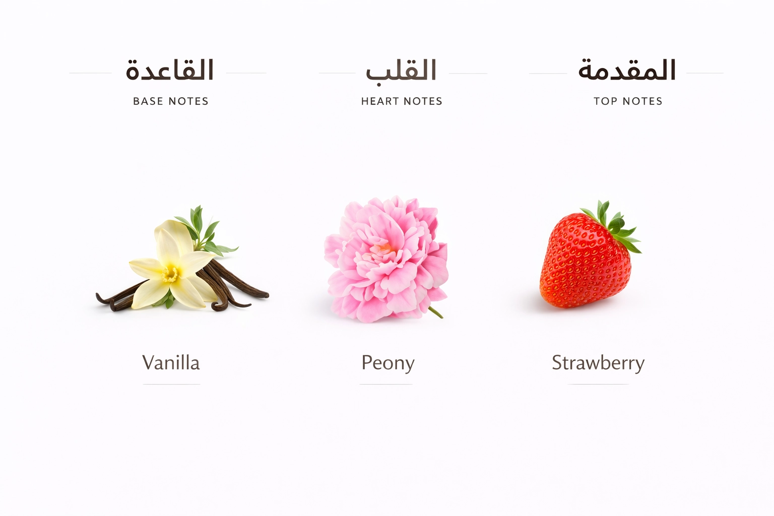 A rich and luxurious fragrance opening with saffron, pear, and praline. It reveals a soft rose heart and settles into a deep base of oud, vanilla, and musk.